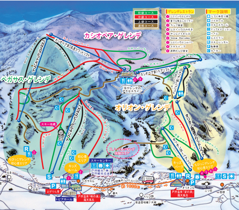 縦が長くて横にも広がりがあるゲレンデだが、大半が斜度が強めの中上級者向けであり、初級者に適したゲレンデは麓の各ゲレンデと、夏秋季の道路を利用した中間エリアからの迂回コースに限定される。なお、兎平109より上部には迂回コースが無いので、初心者は十分に注意しなければならない。